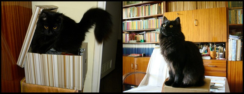 Z maleństwa karmionego z butelki wyrósł przepiękny kot z piekielnym charakterem, nieźle dał nam popalić ;) Kot No Name, a raczej wielu imion - Puszek Okruszek, Szaruś, Hrabia, itp Dopiero z wiekiem trochę złagodniał, szczególnie jak został "dokocony" Milusiem, w 2003 roku. Przeżył z nami ponad 19 lat, w 2010 r musiałyśmy go uśpić z powodu paskudnej postępujacej padaczki, ale do dziś pozostała trauma, do dziś oczy mokre i gardło ściśnięte, nawet teraz gdy to piszę.